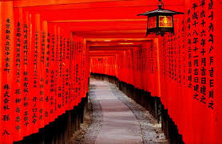 Il Santuario shintoista Fushimi Inari Taisha 伏見稲荷大社 è il principale santuario dedicato al kami Inari, il dio del riso. Dai tempi antichi in Giappone Inari è sempre stato visto come il patrono degli affari e sia commercianti che artigiani tradizionalmente venerano questa divinità; ognuno dei famosissimi portali rossi (torii 鳥居) del Fushimi Inari Taisha è stato donato da un’azienda giapponese. Le volpi, considerate messaggeri, si trovano spesso nei santuari di Inari.