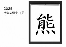 2025 ―「熊」YŪ, kuma = orso. Infatti nel 2025 moltissime notizie hanno riguardato i danni causati dalle frequenti apparizioni degli orsi in varie regioni del Giappone.